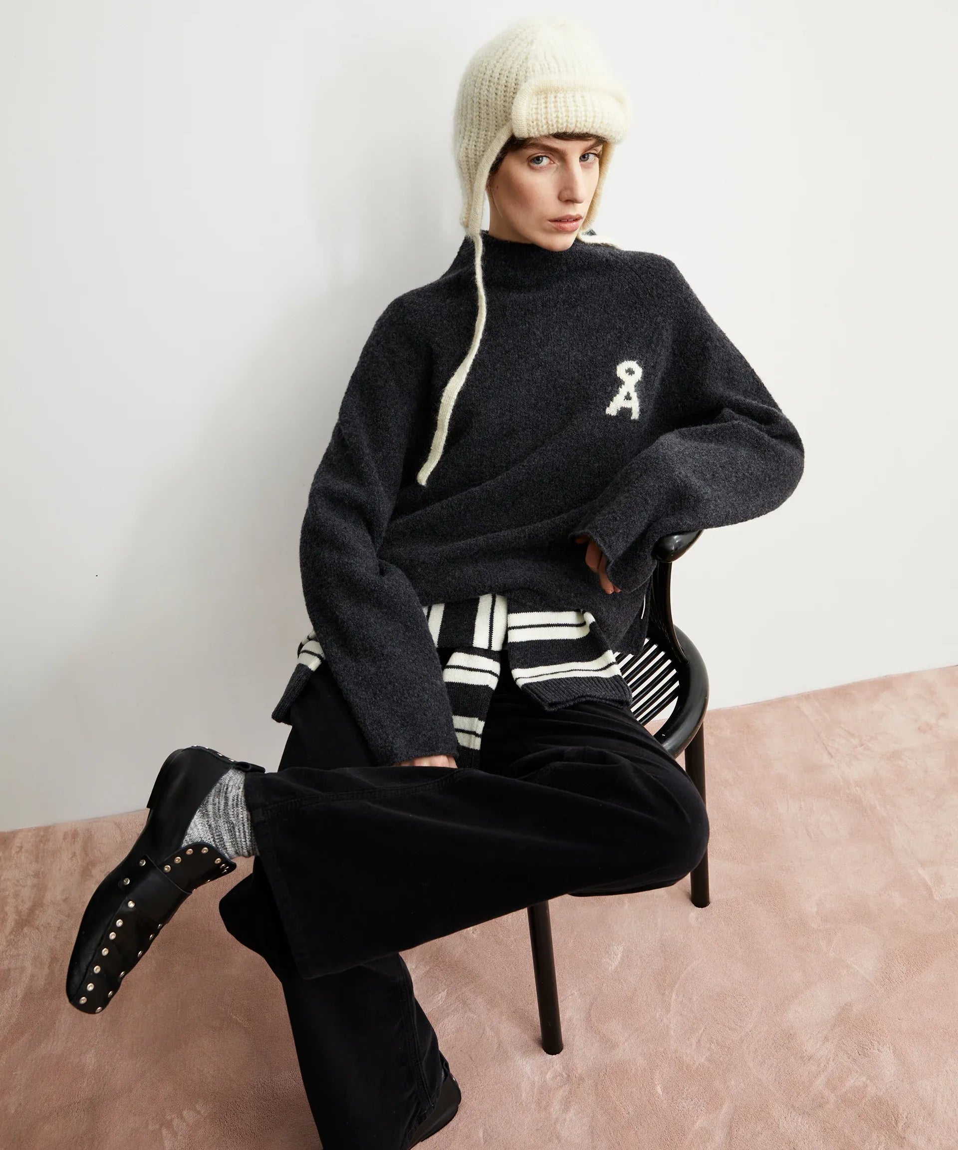 ICONIC Å RAMONAA BOUCLÉ Strickjacke • Steel Melange Oatmilk