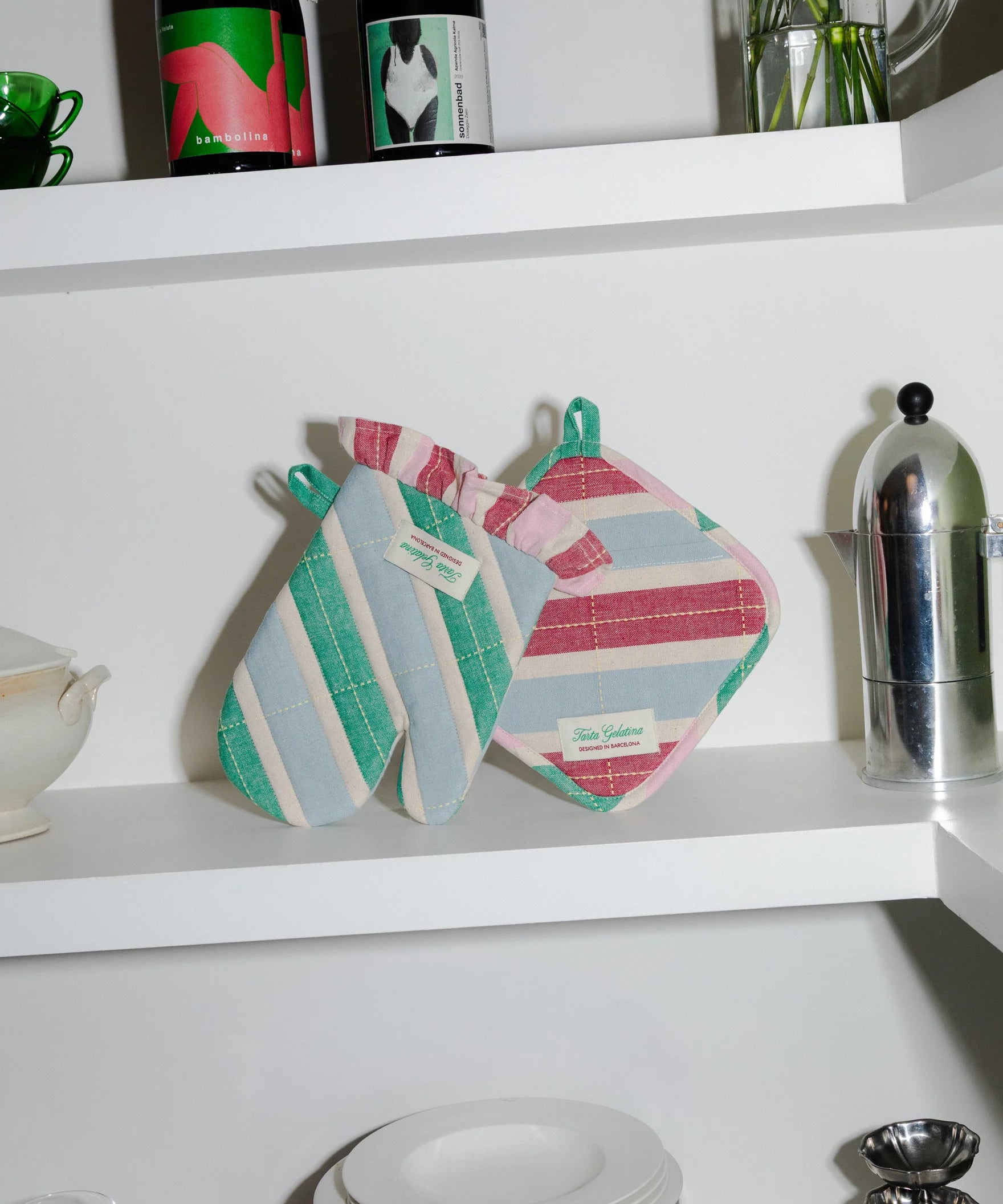 Ofenhandschuh mit Rüschen • Grün/Blau