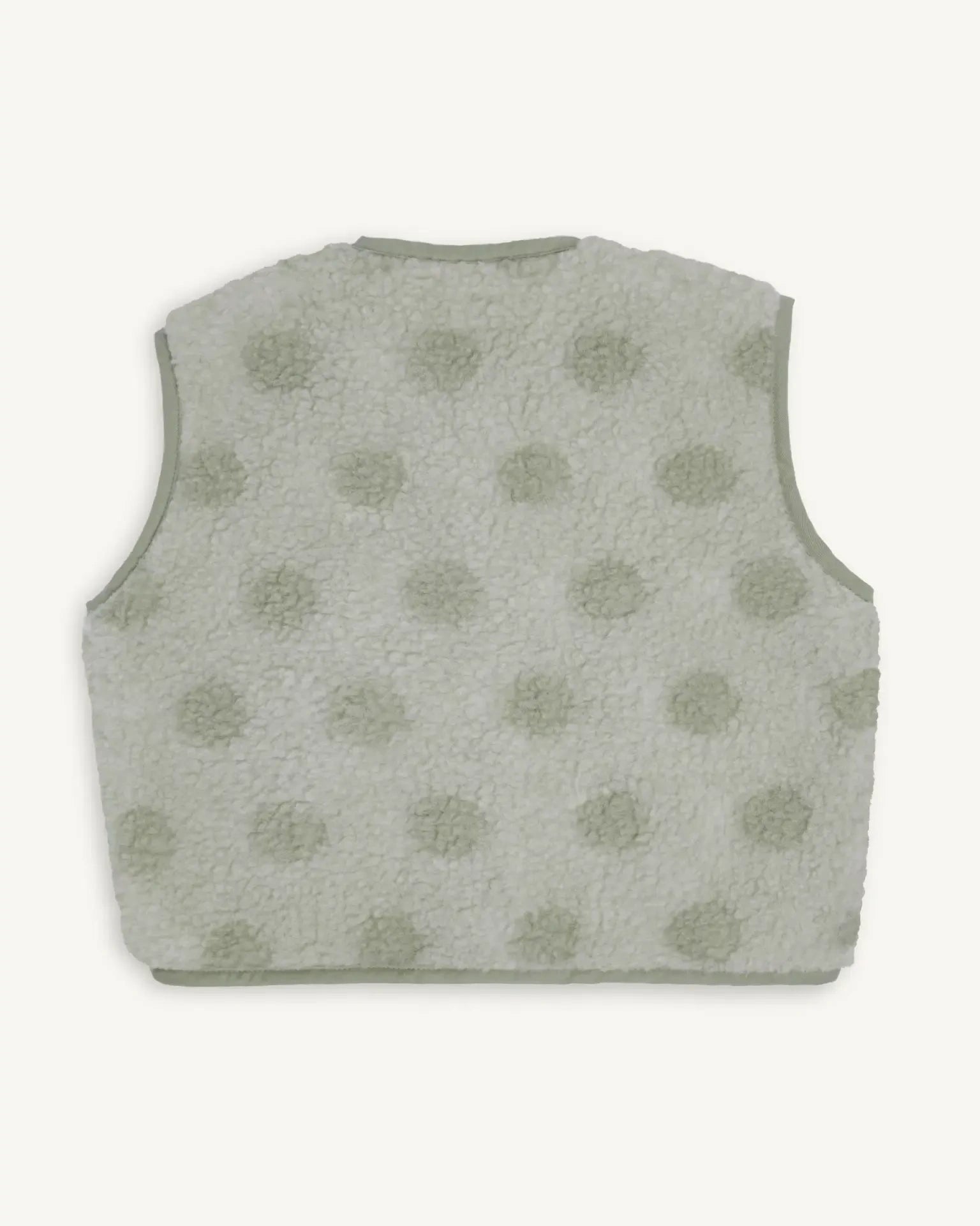 Merino Weste in Hellgrün mit Punkten. Gibt dir angenehme Wärme und ergänzt unkompliziert viele deiner Looks.