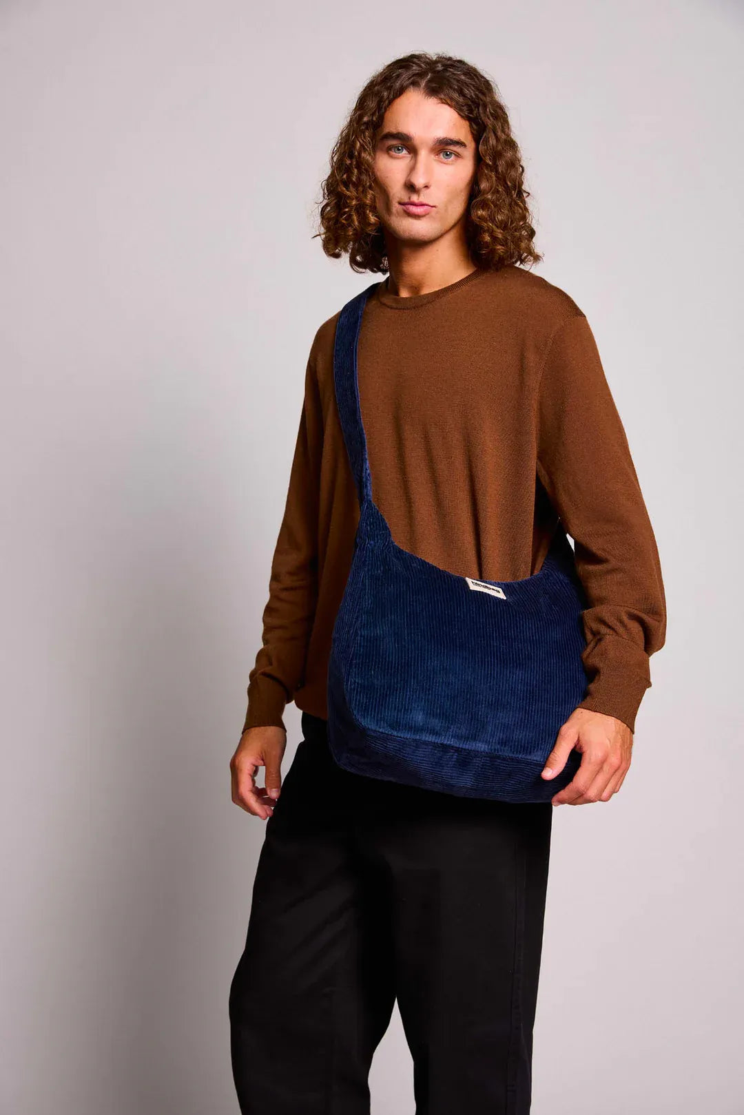 Nachhaltige Schultertasche aus GOTS-zertifiziertem Bio-Cord in Blau – elegant, geräumig und perfekt für Alltag und Arbeit.