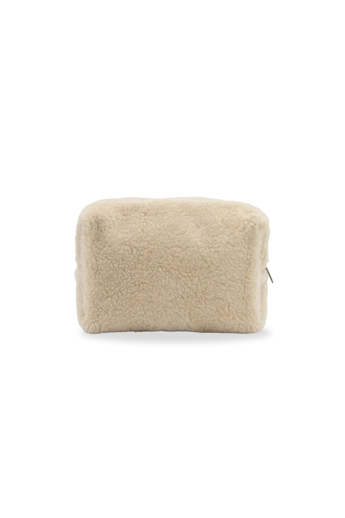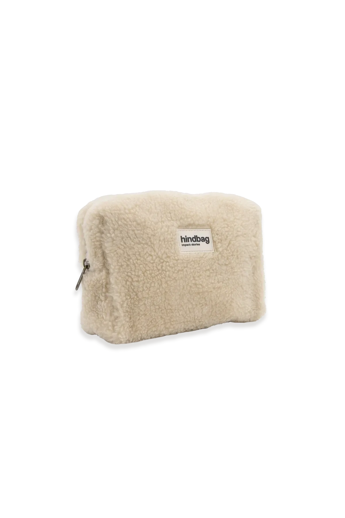 Kompakte Kulturtasche aus weichem Teddy-Stoff in Beige. Der Léon Kulturbeutel von Hindbag ist praktisch, langlebig und fair hergestellt – ideal für Reisen und Alltag.