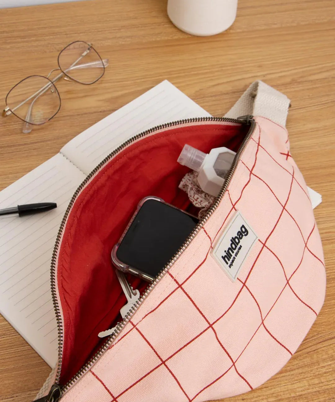 OLIVIA Bauchtasche • Karo Rosé / Rot