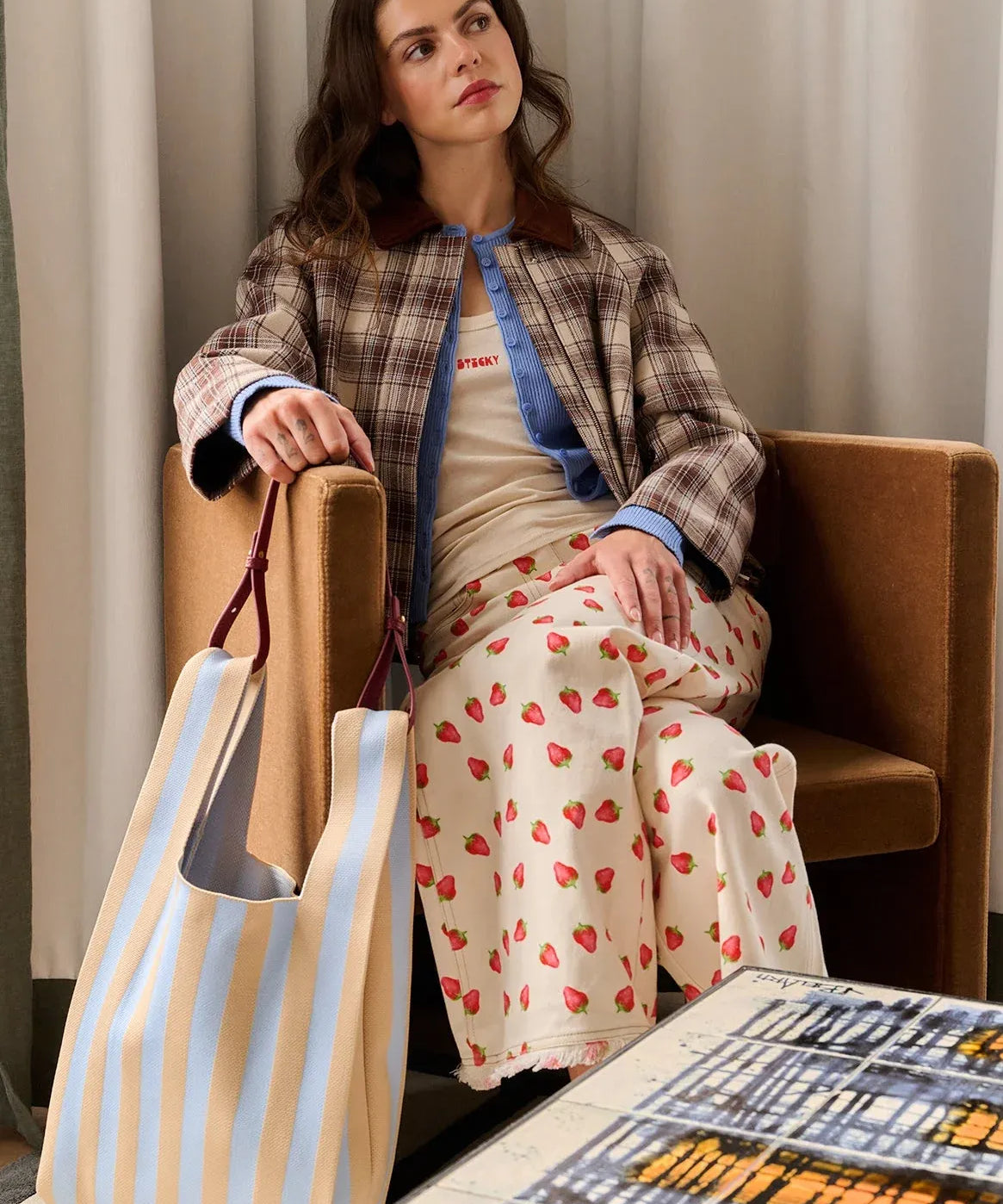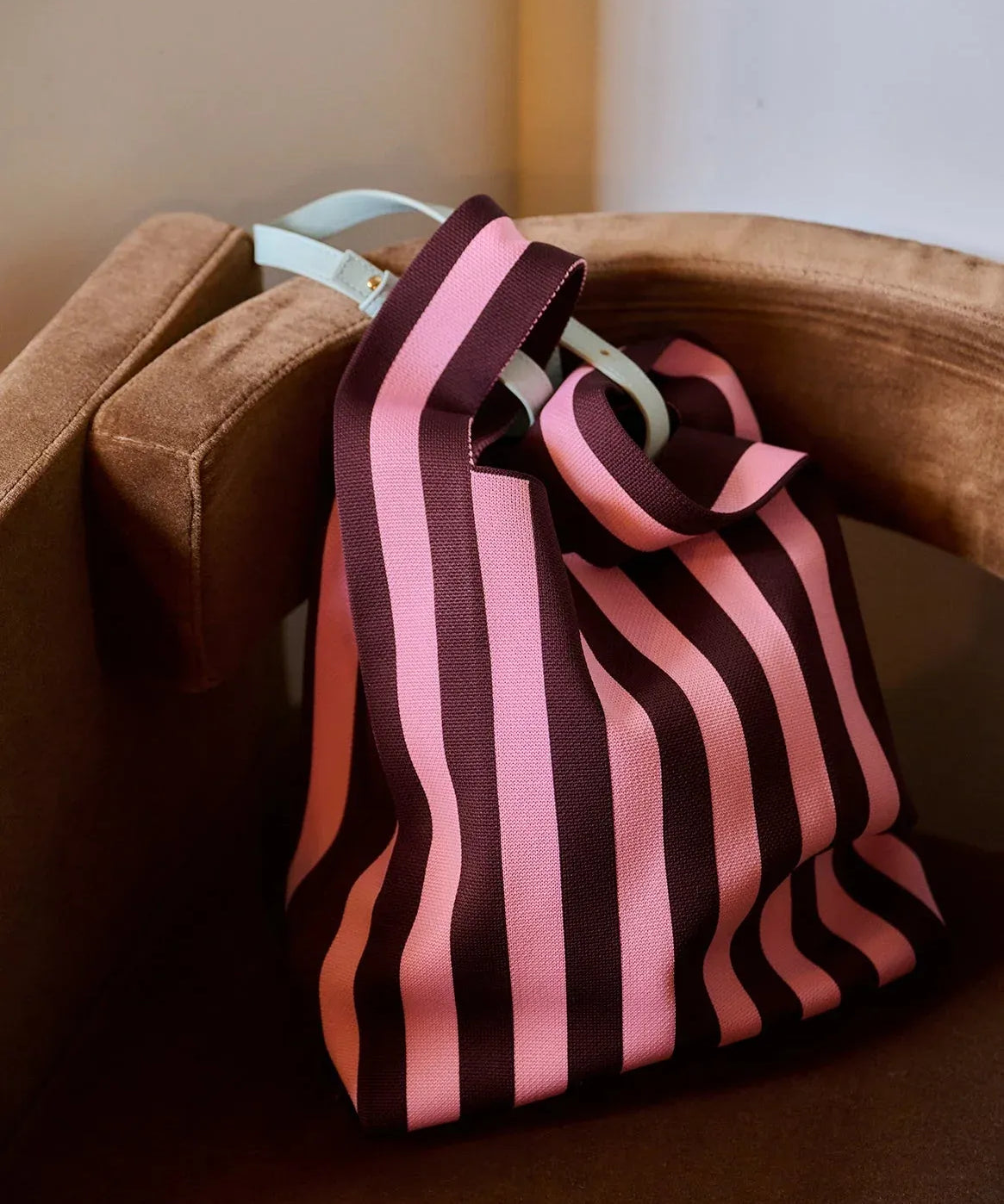 KNITTED STRIPES Shopper • chocolate + bubblegum