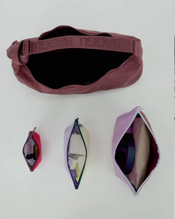 Vielseitiges Organizer-Taschen Set aus recyceltem Nylon für Kosmetik, Kabel oder Reiseutensilien. Die drei Beutel sorgen für Ordnung in Tasche, Rucksack oder Koffer.