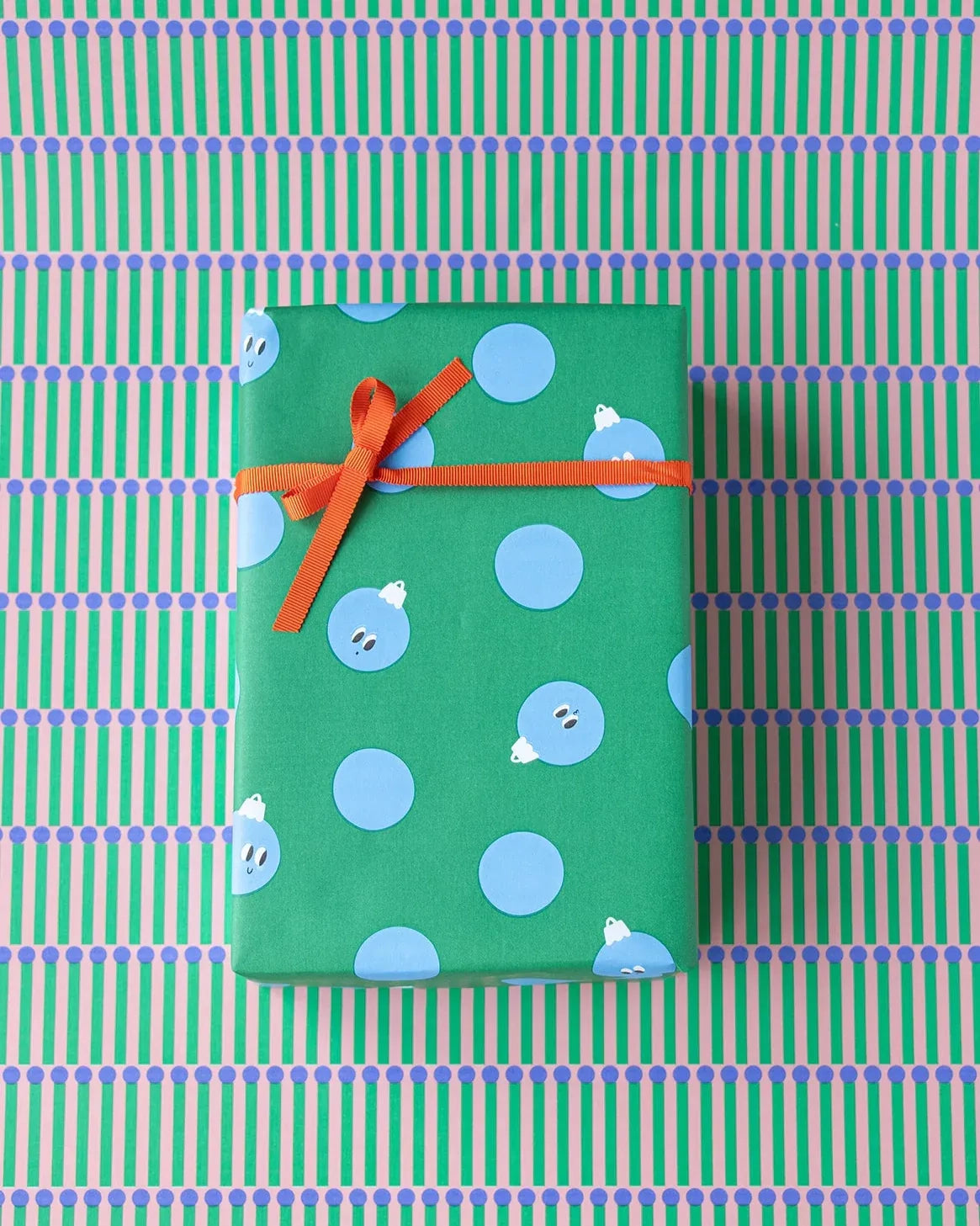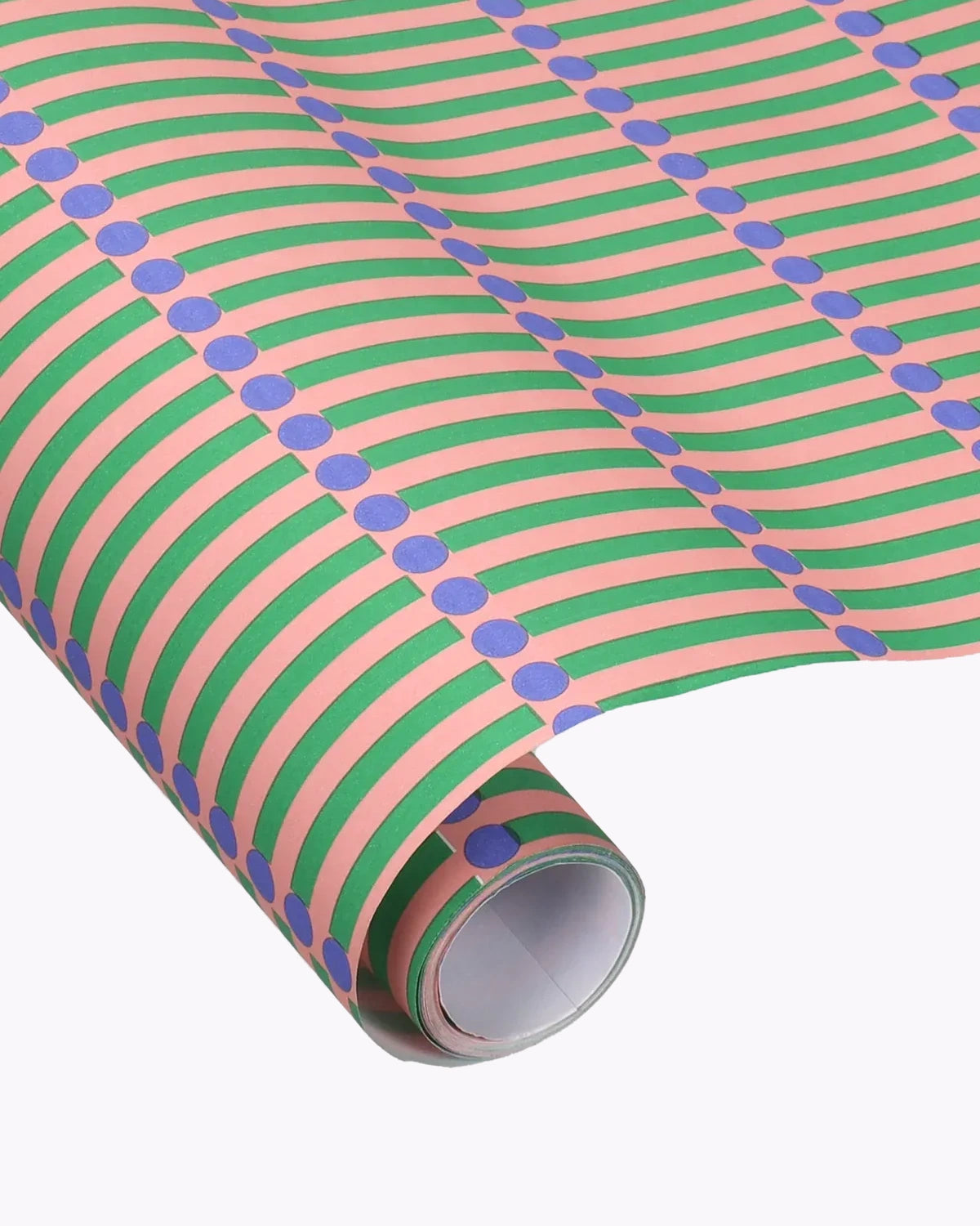 Geschenkpapierrolle von Kado Design mit Streichholz-Muster in Rosa & Grün. Nutzt du zum sachlichen Verpacken kleiner bis mittelgroßer Geschenke.