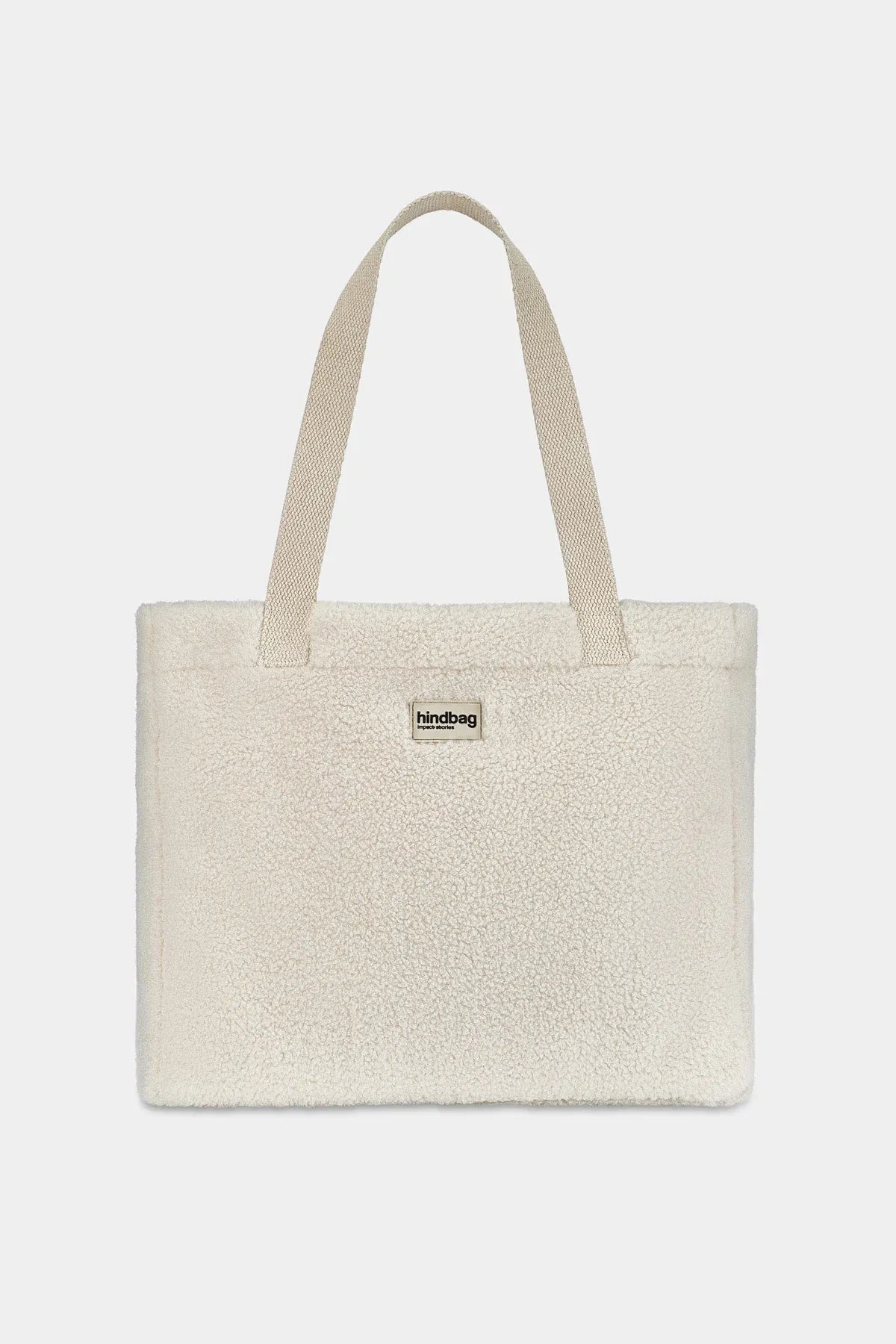 Weicher Shopper aus Teddy-Stoff in Arktisweiß – perfekt für Alltag, Arbeit oder Einkäufe. Fair produziert aus recyceltem Material von Hindbag.